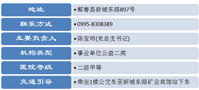 醫院普外科、骨科、泌尿外科、神經外科、婦科、重癥醫學科、心血管內科成為吐魯番市質量控制中心掛靠單位。心血管內科是全疆首家由縣級醫院承擔地、州市級心血管介入診療質量控制分中心的醫院,全國首家胸痛中心縣域模式醫院,在2021年度國家二級公立醫院績效考核躋身A+行列,全疆排名第一名。