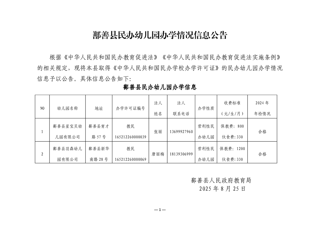 鄯善縣民辦幼兒園辦學(xué)情況信息公告