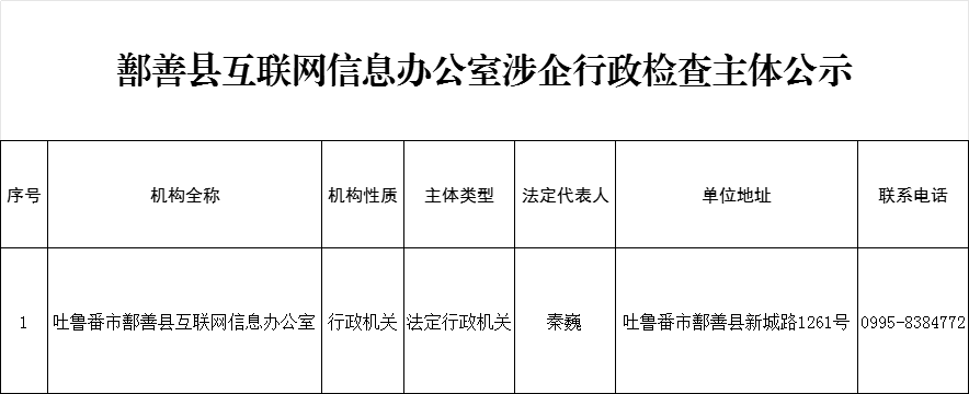鄯善縣互聯網信息辦公室涉企行政檢查主體