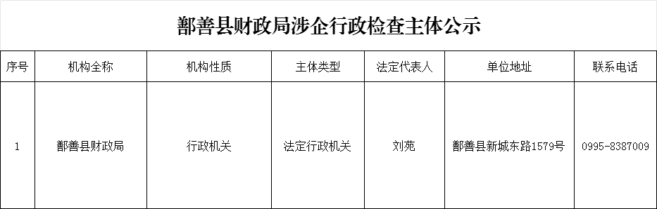 鄯善縣財(cái)政局涉企行政檢查主體公示