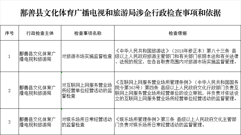 鄯善縣文化體育廣播電視和旅游局涉企行政檢查事項和依據