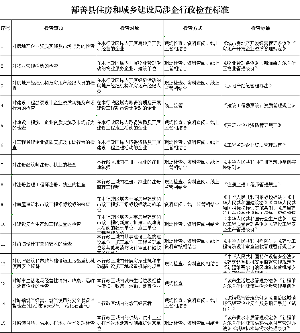 鄯善縣住房和城鄉建設局涉企行政檢查標準