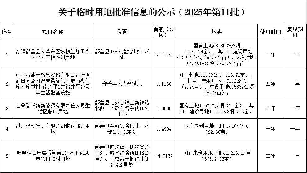 關于臨時用地批準信息的公示(2025年第11批)